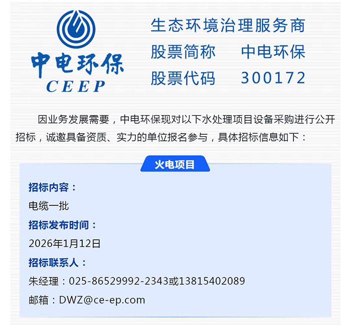 中電環(huán)保股份有限公司是南京市首家環(huán)保上市公司(股票簡(jiǎn)稱:中電環(huán)保,股票代碼:300172),南京環(huán)保產(chǎn)業(yè)協(xié)會(huì)會(huì)長(zhǎng)單位,國(guó)家級(jí)聯(lián)盟理事長(zhǎng)單位,是生態(tài)環(huán)境治理服務(wù)商,主營(yíng)(3+1):水務(wù)、固危廢、煙氣治理及產(chǎn)業(yè)創(chuàng)新平臺(tái),包括:工業(yè)水處理、污水處理及水環(huán)境綜合治理;固危廢土壤、污泥餐廚垃圾處理;煙氣及VOCS治理;智慧環(huán)保;高端裝備等。