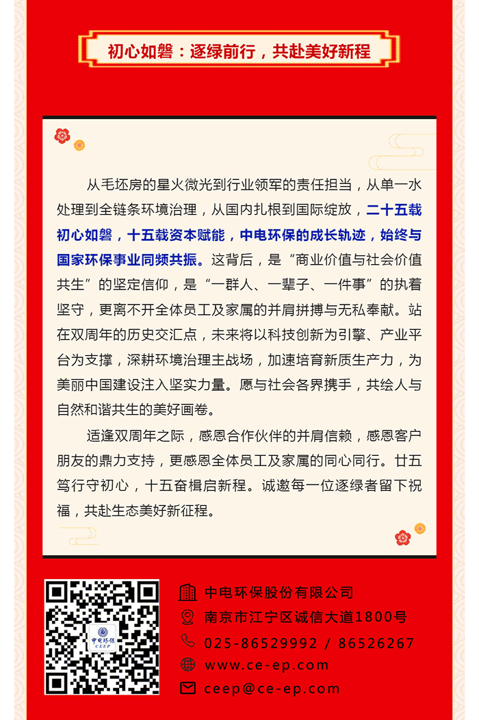 【中電環(huán)保1.18-2.1雙慶】創(chuàng)立25載,篤行守初心;上市15載,奮楫啟新程
